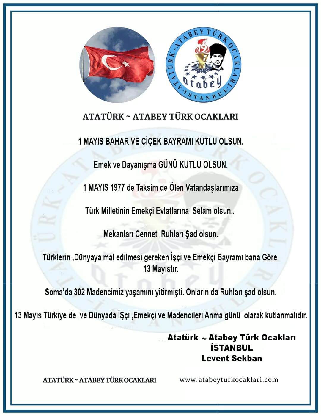 Soma’da ekmeği uğruna can veren 302 canımıza Allah’tan rahmet ve Tüm Türk milletine dünya emekçilerine sabırlar ve sağlıklı uzun ömürler diliyorum.